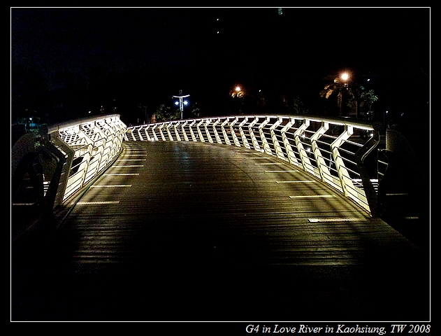 用了手機快速拍拍家裏後面的公園,老媽說這是愛河之心,剛好位在我家後面的愛河上,從家裏走到橋上也不過三分鐘的距離,十分方便,每天吃完晚餐就走到這邊散散步,幫助消化一番。等過陣子把相機拍的精細照片再來補上。每天經過都覺得好有景觀設計感~超有藝術氣氛的地方,週末還可以搭著船遊河,老爹要出錢讓我試試搭船經驗,還是省省啦。